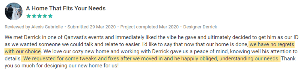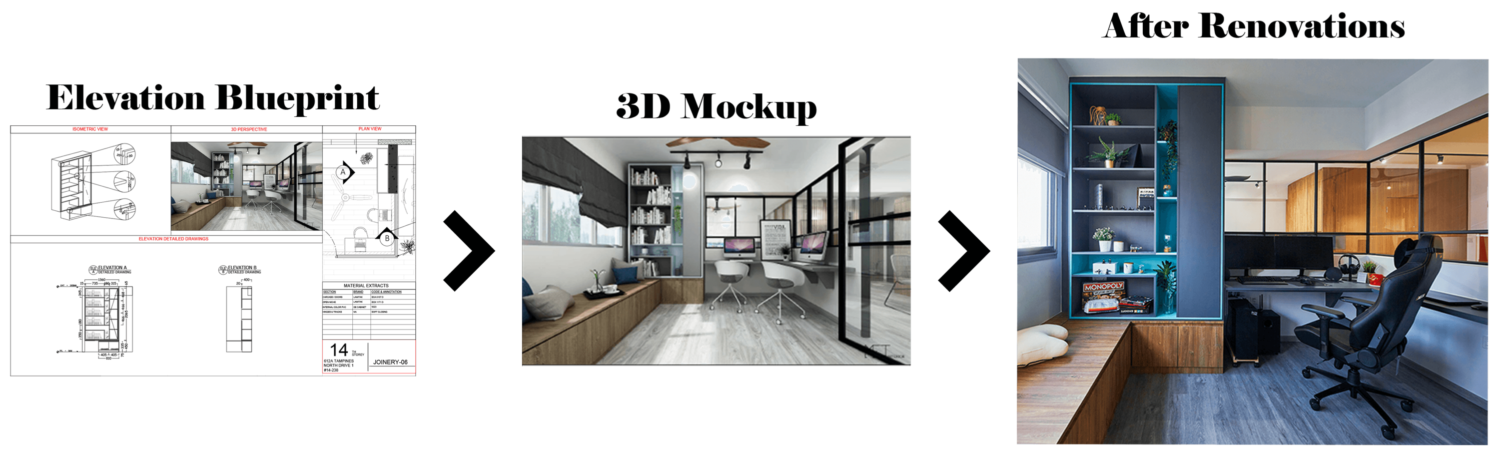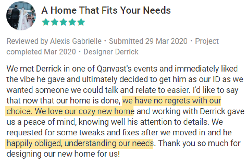 My husband & I met Eric from Met Interior at the Qanvast HangouT. Prior to that, we had met up with 3 other IDs. During our 1st meet up, we conveyed to Eric what we had in mind and he was quick to show us pictures on the spot. We decided to engage him as his quote was