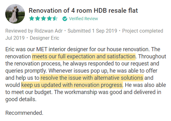 Overall, we are pleased and satisfied with Eric and will definitely recommend Met Interior.